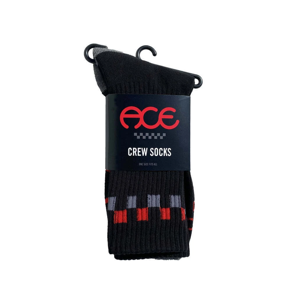 Balck Sock w/ Ace Logo and Red / Grey Checker Pattern