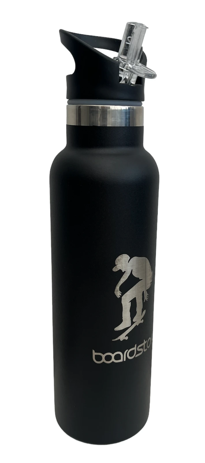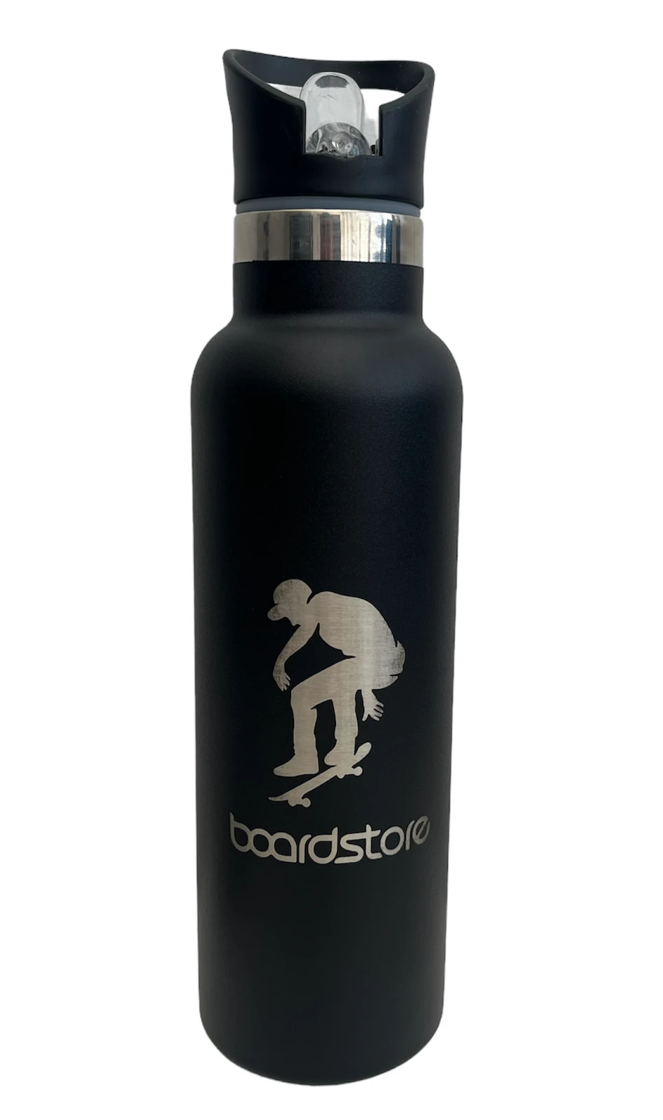 Boardstore Water Bottle Pop Top Insulated Stainless Steel Engraved Logo Black