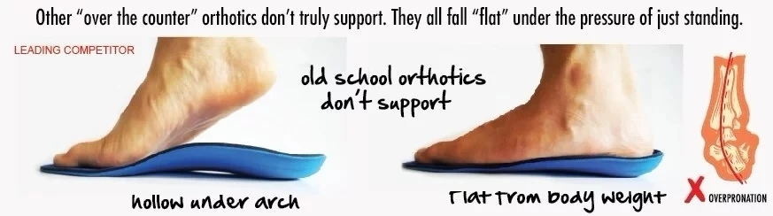 Arch Support – These orthotics help prevent over-pronation, which assists the body in proper alignment. This relieves daily fatigue, sore joints and allows longer performance.
