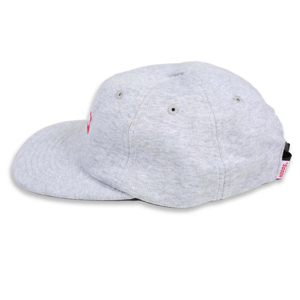 The BIGHOPPS 6P Cap is an adjustable heather grey fleece hat that features a Hopps Label in red on the front.