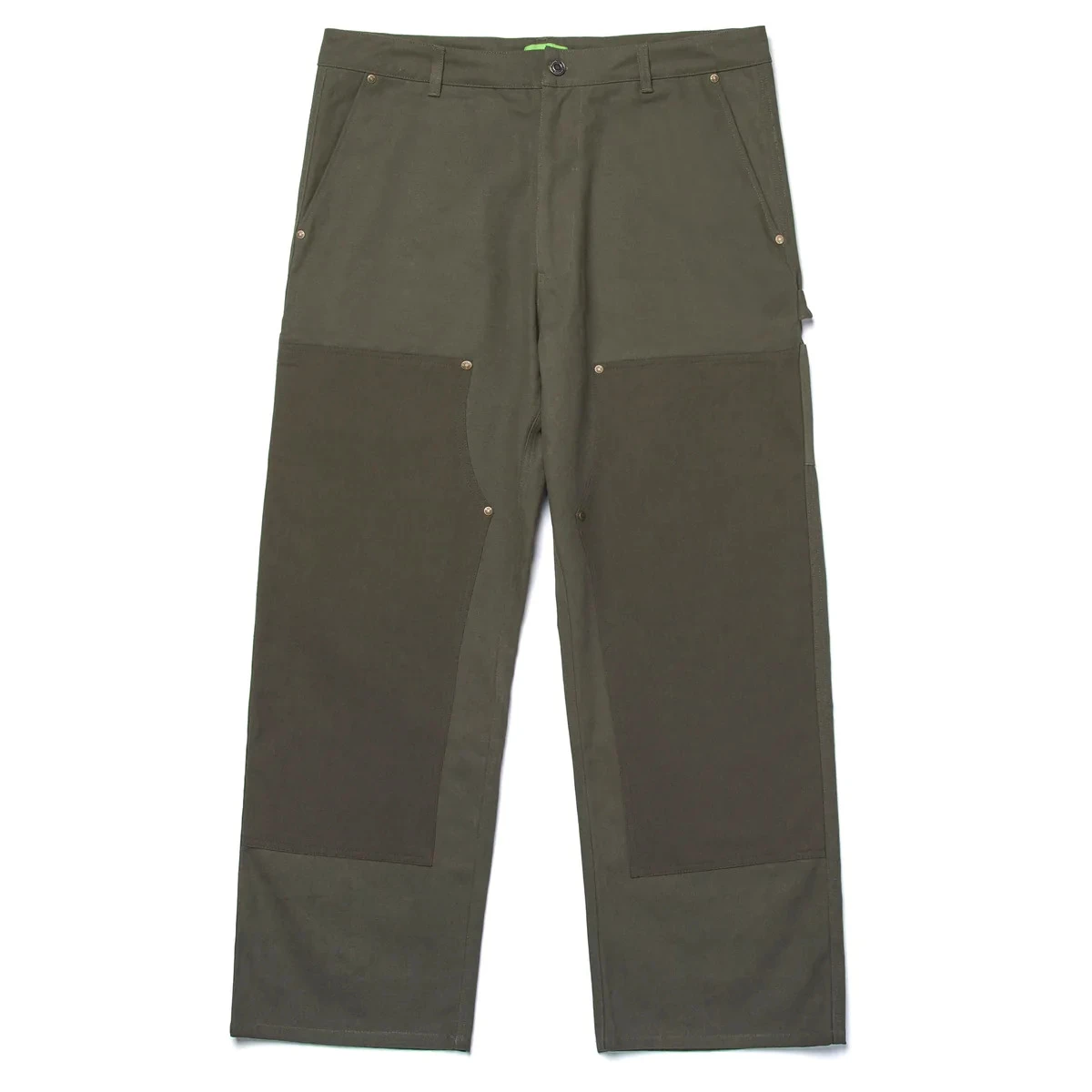 The workwear-inspired Gilman Double Knee Pant is constructed of heavy-duty cotton canvas in a relaxed fit and is reinforced with durable double knee panels and triple needle stitching along critical seams. Equipped with spacious pockets and a branded hammer loop, the pants are finished with an embroidered HUF ‘Crown’ logo at the rear utility pocket.