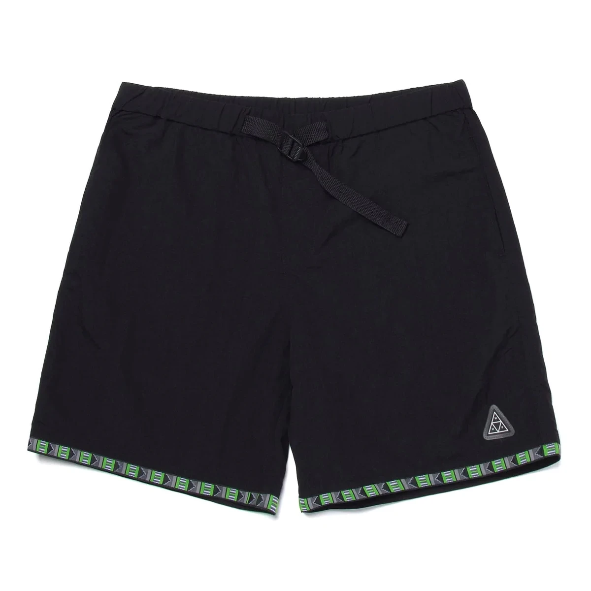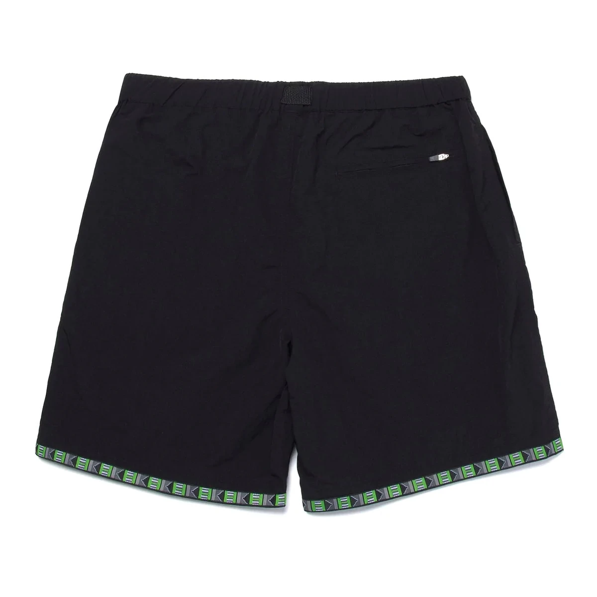 The Teton Tech Short is made of lightweight Taslan nylon treated with weather-proof coating and features an integrated belt at the elastic waist for an easy-to-wear design. Equipped with spacious pockets and a ‘Triple Triangle’ logo patch at the left leg, the shorts are complete with geometric jacquard taping details at the hem.