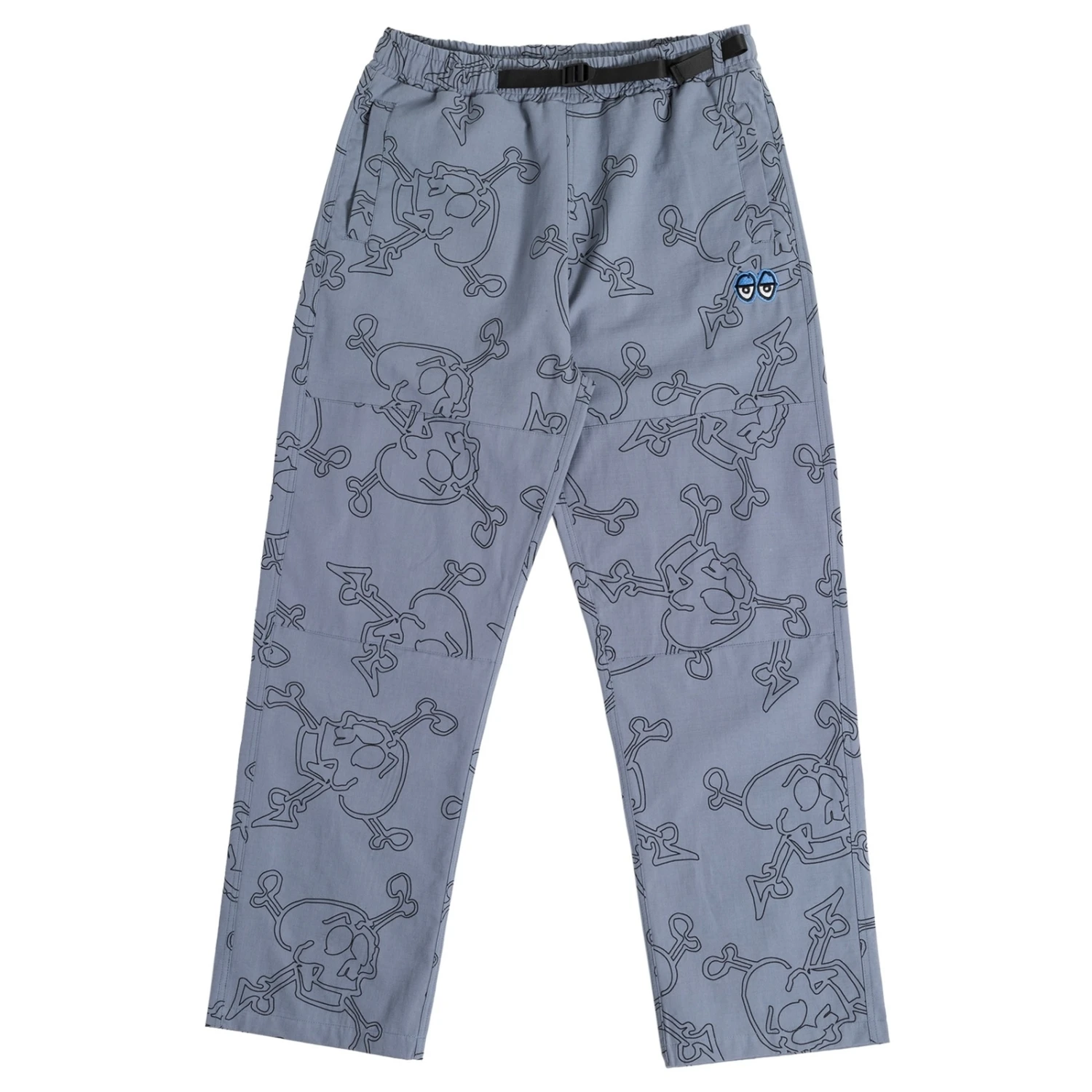 100% Cotton ripstop pant with double layer reinforced knee panels and web belt with cinch elastic waist adjustment.