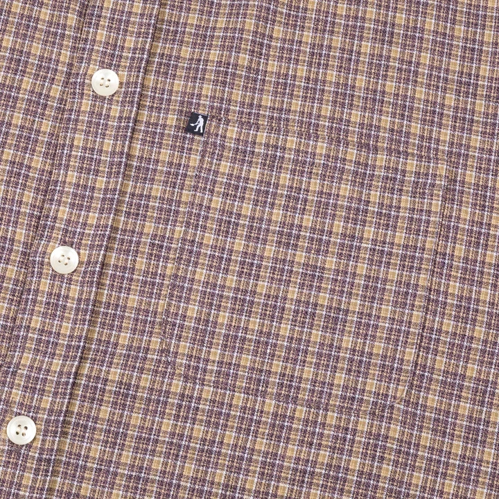 Pass~Port Workers Check Shirt Short Sleeve in honeycomb is apart of the shirting range #40. The Workers Shirt is made from 100% cotton with custom check patterning and single pocket on front. The Pass~Port button up shirt sources 100% recycled buttons for all products utilising materials to be repurposed.