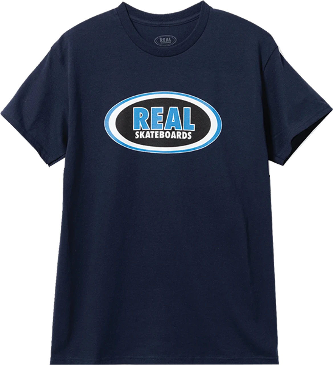 Regular fit cotton tee with Real graphic screen printed on chest.