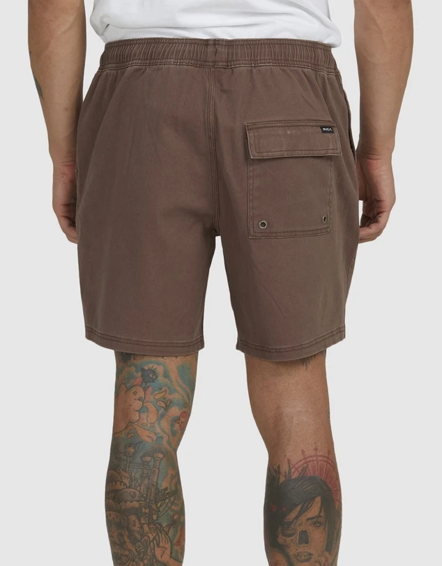 A SOLID SHORT THAT WON’T HOLD YOU BACK, THE MEN’S RCVA ESCAPE ELASTIC SHORT FEATURES A COMFORT-DRIVEN DESIGN WITH FUNCTIONAL STRETCH. A SOLID ELASTIC WAIST SHORT, THE ESCAPE KEEPS TO UTILITARIAN LINES WITH A DRAWCORD AT THE WAIST, SIDE SEAM POCKETS AND A BACK POCKET WITH A RCVA WOVEN LABEL. A HEAVY ENZYME WASH OFFERS THE SHORT A BROKEN-IN LOOK AND FEEL.