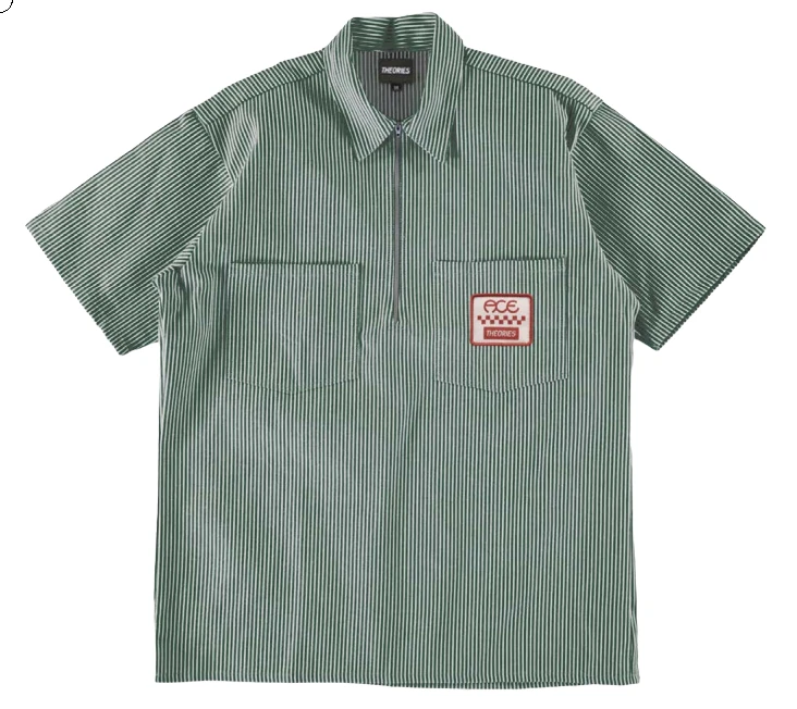 Theories x Ace Zip Work Shirt – White/Green Stripe