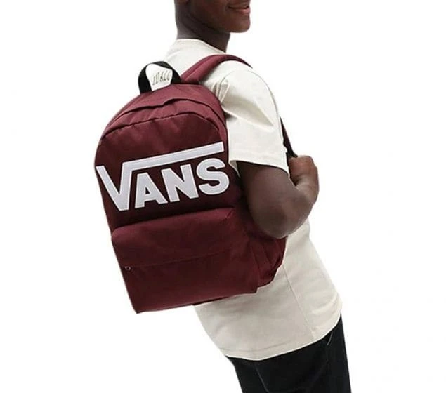 The Vans Old Skool Drop V Backpack features one large main compartment and it also has a front zip pocket with an organiser for quick access and a water bottle pocket. The Vans logo is on the front and straight-cut padded shoulder straps give this bag extra comfort. Measuring 41.9 L x 32.4 W x 12.1 D cm, it has a 22-litre capacity.