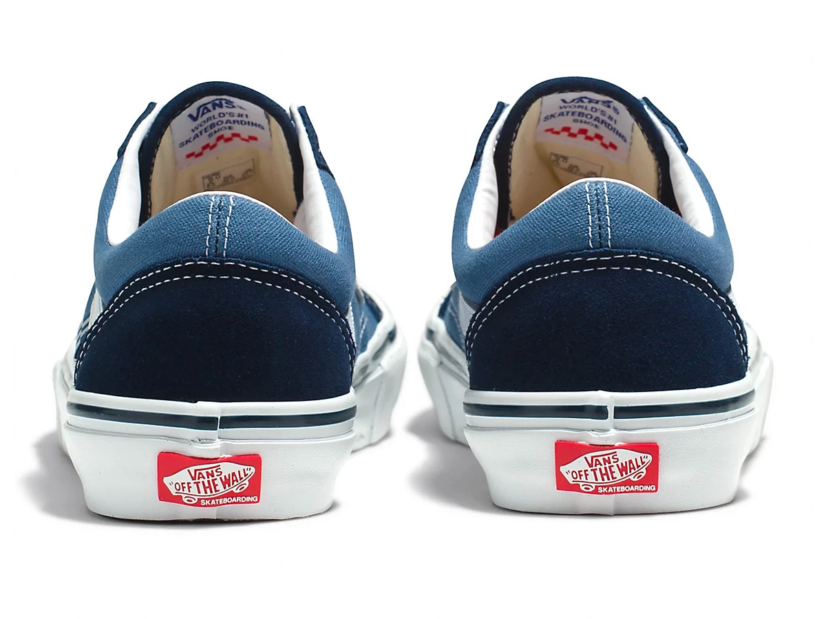 Introducing the Vans Skate Old Skool Pro Shoes in Navy/White: Tough on the Inside, Stylish on the Outside. Vans completely redesigned collection has been built with modern performance in mind, providing you with all the features you need to help them reach their maximum potential. Featuring classic suede and canvas uppers, the Skate Old Skool is designed to give you a classic look and unbeatable performance.