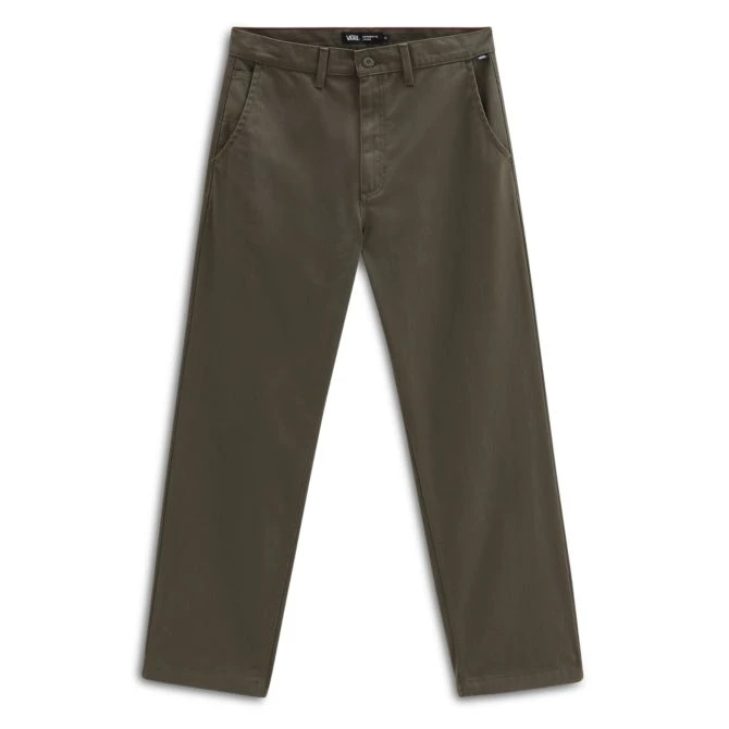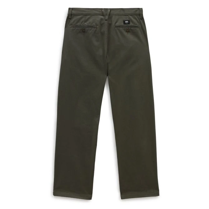 Built with a workwear fabrication, this loose chino pant features classic chino front hand pockets with a new coin pocket placement on the right, rear welt pockets with button closures, and embroidered “Drop V” bartacks for reinforcement. Plus, new details bring plenty of “Off The Wall” style to this skate essential, including the new “V” belt loop detail on the back waistband, the new checkerboard twill taping on the internal fly facing, and the new flag label sewn internally to the hem seam for added branding when legs are cuffed.