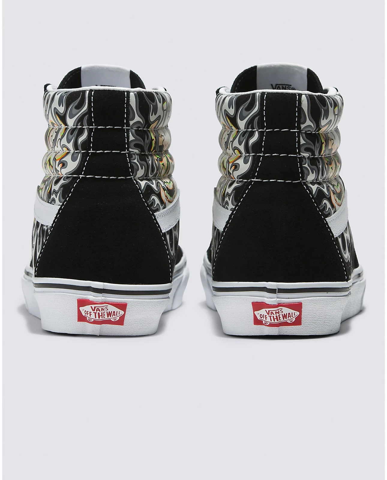 The Sk8-Hi was a game changer as the first high-top skate shoe to break onto the scene. With a padded collar for ankle support and reinforced toe caps, it remains a style like no other. The Sk8-Hi was our second model to showcase the Vans Sidestripe, and its bold design has remained iconic ever since. With a print featuring a smiling skull encased in flames, this Sk8-Hi adds a rebellious edge to this timeless shoe.