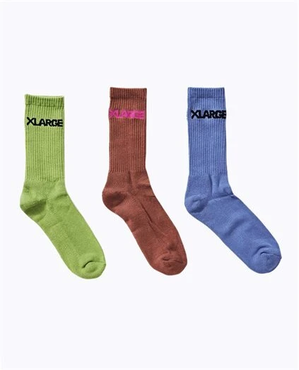 The Xlarge Club Sock 3 Pack in Navy/ White/ Burgundy is a sock 3 pack with a printed logo on the sole. Made from 98% Cotton 2% Elastane.