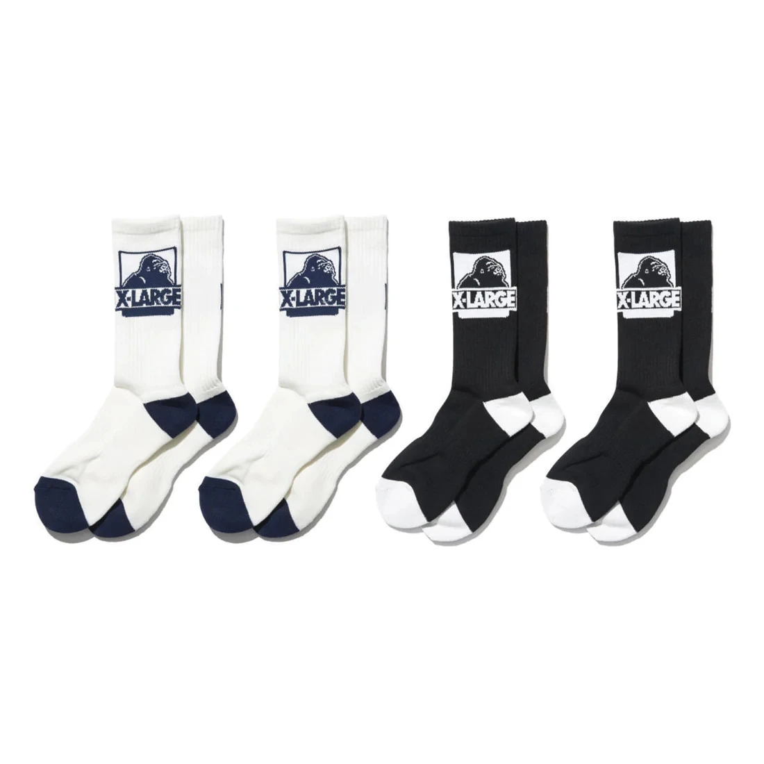 The Assorted Classic OG Sock is a combed cotton sport sock suitable for sizes 7-11. It features The Xlarge OG Logo on the outside of each sock and contrasting heel and toe panels. Sold in pack of 4 (2x black, 2x white). Made from 100% Cotton.